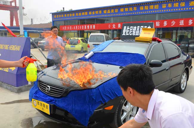 開業(yè)以來一直致力于技術的開發(fā)和研究,微創(chuàng)補漆從2011年五月正式成熟以來,以微創(chuàng)補漆修復車身劃痕和刮蹭的全新技術得到千百車輛的檢驗,深的車主好評,F正以技術培訓的方式向外推廣,讓更多車主享受高品質的服務是我們一貫的追求。 恒海汽車服務會所在不斷提高技術與服務水平的同時,也不會忘記回饋新老客戶,特此本會所聯合國內幾家著名的汽車用品供應廠家共同舉辦這次“真情回饋、大酬賓”活動,活動期間,還特別邀請北京、廣東等地的著名技術專家為廣大客戶提供技術咨詢與現場服務。在活動期間還多次為前來服務的顧客現場演示“大火燒車”,所謂的“大火燒車”就是對本會所為客戶提供的“鍍晶”技術的有力驗證,即在已經鍍晶的汽車外漆的表面噴灑汽油,點燃后,讓大火持續(xù)燃燒一段時間,等大火熄滅后,仔細檢驗一遍汽車在大火燃燒與高溫熏烤的破壞性試驗中,車漆有沒有收到影響,F場對本會所鍍晶的同一車輛進行多次燃燒試驗,擦拭后,車漆依舊完好無塤,光亮如初。完全驗證了本會所提供的“鍍晶”技術非常過硬,對不同汽車的外表確確實實能夠起到有效地保護作用。 恒海汽車服務會提供的各種汽車裝飾、裝潢材料,及汽車用品,一律從國內正規(guī)的大型廠家進貨,從采購源頭上保證了所有材料的安全性與環(huán)保性,切實為廣大顧客把好關,服好務,做油城市民信賴的“汽車生活好伴侶”。
